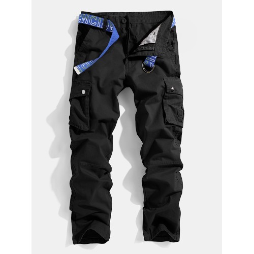 Mens Solid Color Multi Pocket Zipper Fly Mid Waist Casual Pants